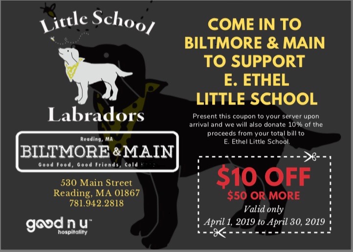 Visit Biltmore & Main in Reading anytime in the month of April, and get $10 off your purchase AND 10% of your bill will be donated back to the Little School!
